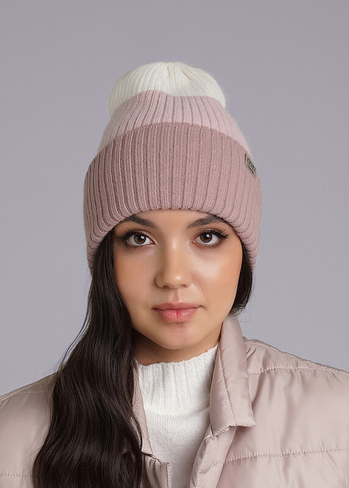 Женская двойная шапка с отворотом , декорирована нашивкой логотип в височной зоне. Подойдёт для холодной зимы.