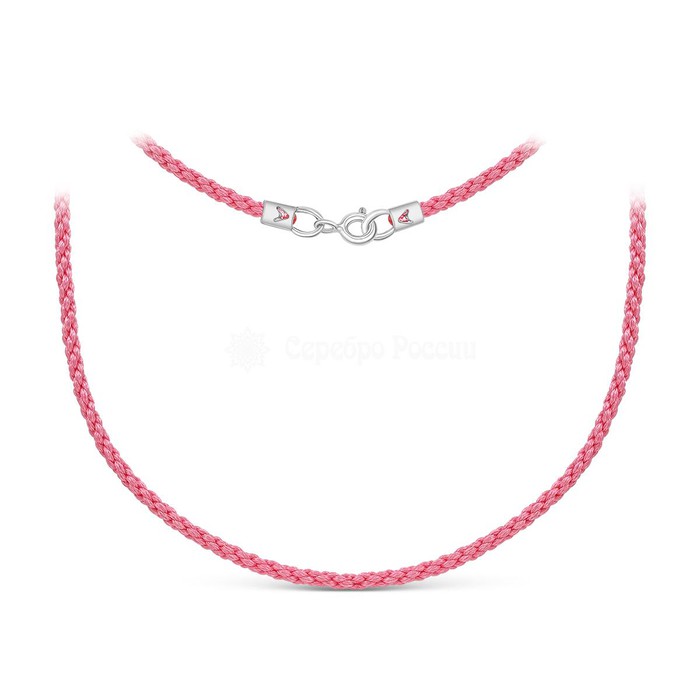 Шнурок текстильный плетеный с элементами из родированного серебра (розовый) Ш-01
