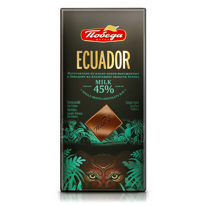 Приглашаем вас в гастрономическое путешествие по странам, где произрастают какао-бобы с уникальным вкусом. Молочный шоколад «Эквадор» 45 % приготовлен из какао-бобов, которые выращивают в этой стране на плантациях Арриба.