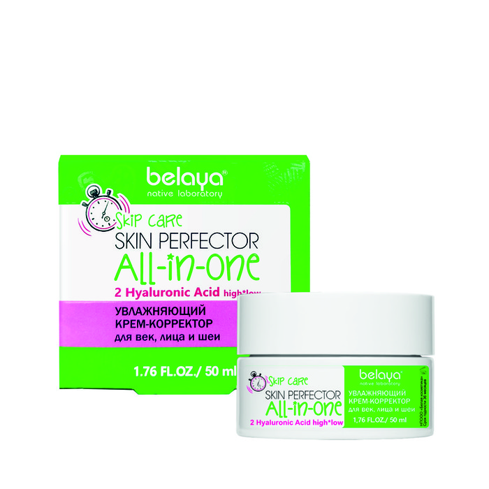 Крем-корректор для век, лица и шеи Belaya Skip Care Увлажняющий содержит два типа гиалуроновой кислоты, которые осуществляют увлажнение кожи во всех слоях. Крем-корректор для век, лица и шеи на основе высокомолекулярной гиалуроновой кислоты увлажняет верхние слои кожи, устраняет раздражение, шелушение, тусклость. Мгновенно разглаживает кожу, выравнивает морщины, придает взгляду открытость и выразительность, а контурам лица – четкость. Низкомолекулярная гиалуроновая кислота увлажняет кожу изнутри, усиливает барьерные функции кожного покрова, уменьшает трансэпидермальную потерю влаги, устраняет последствия окислительного стресса, предупреждает дряблость и сухость, делает кожу более молодой, гладкой, матовой, и свежей. Увлажняющий крем-корректор для век, лица и шеи Belaya Skip Care подарит коже персиковую бархатистость, нежность и упругость, отлично смягчает, увлажняет и разглаживает.
