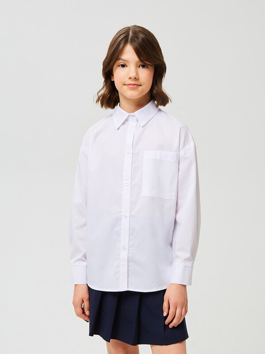 Классическая блузка для подростков из смесового хлопка с отложным воротником на стойке и длинными спущенными рукавами на манжете. Высокое содержание хлопка в составе обеспечивает отличную воздухопроницаемость и комфорт в повседневной носке. Левая сторона полочки дополнена накладным карманом. Застежка центральная на планку с пуговицами. Блузка будет прекрасным дополнением к моделям из школьной коллекции SMENA.