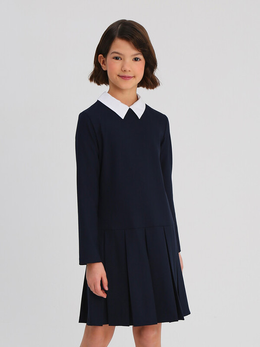 Стильное элегантное платье с заниженной линией талии. Дополнено съемным отложным воротником контрастного белого цвета, что обеспечивает не только удобство в уходе, но и возможность разнообразить ежедневный образ. Юбка в широкую складку. Застежка на потайную молнию на спинке не нарушает конструкцию и обеспечивает идеальную посадку.