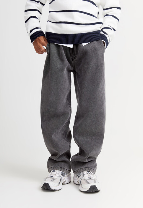 Утеплённые джинсы свободного силуэта для мальчиков из прочного денима с поясом на резинке и широким шнуром для утяжки по талии. Модель дополнена четырьмя карманами: двумя спереди и двумя накладными сзади. Регулируемый пояс со шнуровкой . Эти джинсы создают комфорт и свободу движений, оставаясь стильным и универсальным вариантом для повседневной носки. Представлены в двух цветах – сером и чёрном. Размерный ряд от 128 см до 176 см.