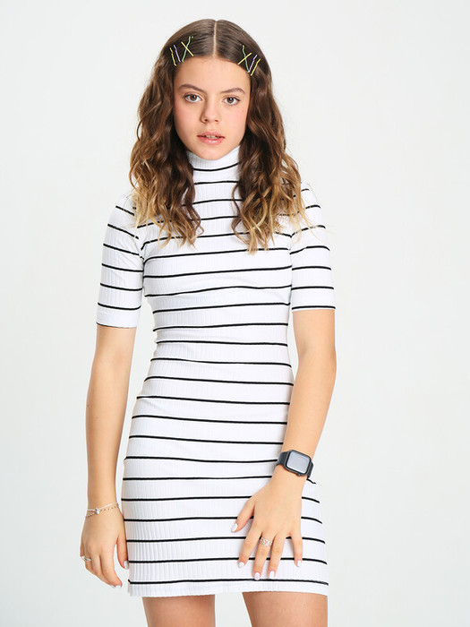 Модное мини-платье с коротким рукавом идеально подойдет на каждый день. Оно выглядит просто, но оригинально, поэтому подойдет для разных событий. Нежный трикотаж приятно прилегает к телу, хорошо тянется и обладает высокой воздухопроницаемостью. Короткая модель с воротником-стойкой станет отличной базой для создания стильных луков. В прохладный день поверх него можно накинуть свитер, джинсовую куртку или кардиган. Повседневное универсальное платье станет одним из любимых в гардеробе юной модницы.