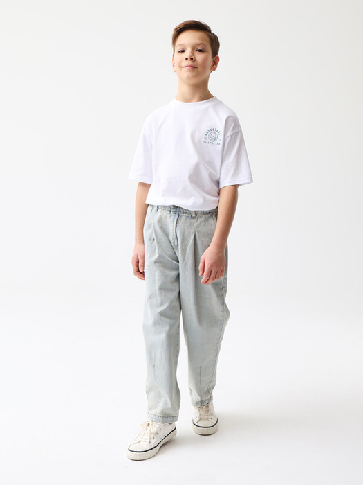 Джинсы Slouchy с вытачками по низу. Плотный деним из 100% хлопка. Свободный крой со слегка зауженными к низу брючинами полной длины. Высокая посадка талии и пояс с внутренней регулируемой резинкой. Застежка на молнию и пуговицу, шлевки для ремня, пять карманов. Представлены в 3 цветах – светло-голубой, табачный, молочный. Размерный ряд 128 – 176 см.