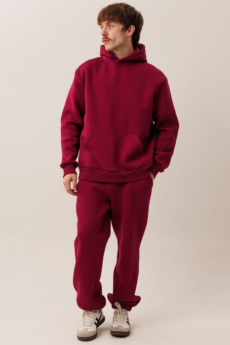 Мужской тёплый уютный костюм. Подойдет для прогулок и отдыха. Изготовлен из футера с начесом, состоит из худи покроя оверсайз и джоггеров.