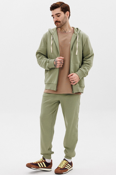 Классический мужской спортивный костюм состоит из худи на застёжке-молнии и брюк на манжетах. Всесезонная ткань сделает его любимым в Вашем гардеробе как для дома, так и улицы.