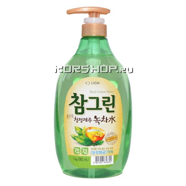 Средство для мытья посуды фруктов и овощей Chamgreen с экстрактом зелёного чая – это замечательный продукт от корейской торговой марки CJ LION, который выгодно отличается от более бюджетных аналогов своим экологичным натуральным составом и превосходными моющими свойствами.   В составе средства присутствуют специальные защитные компоненты, предохраняющие чувствительную кожу рук от пересушивания. Экстракт зелёного чая оказывает смягчающее воздействие, а также является одним из основных моющих компонентов.   При промывании овощей и фруктов полностью удаляются остатки пестицидов, удобрений и парафина. После использования этого средства на посуде не остаётся никаких следов и запахов, поэтому можно не волноваться о попадании в организм ПАВ и других химических соединений вместе с едой.   В интернет-магазине KorShop.ru можно купить средство для мытья посуды фруктов и овощей Chamgreen по очень доступной цене. У нас Вы найдёте экологичную бытовую химию и другие качественные азиатские товары и сможете заказать их с доставкой по Москве и Подмосковью.   Состав: ПАВ (высшие спирты на основе растений, высшие амины на основе растений, неионогенный растительный состав и др.), экстракт зеленого чая, розмариновый экстракт, отдушка, консервант, вода.   Срок годности 3 года.   Тэги: корейская бытовая химия, экологичная бытовая химия, корейские товары, корейские продукты, средство для мытья посуды, товары из Кореи.