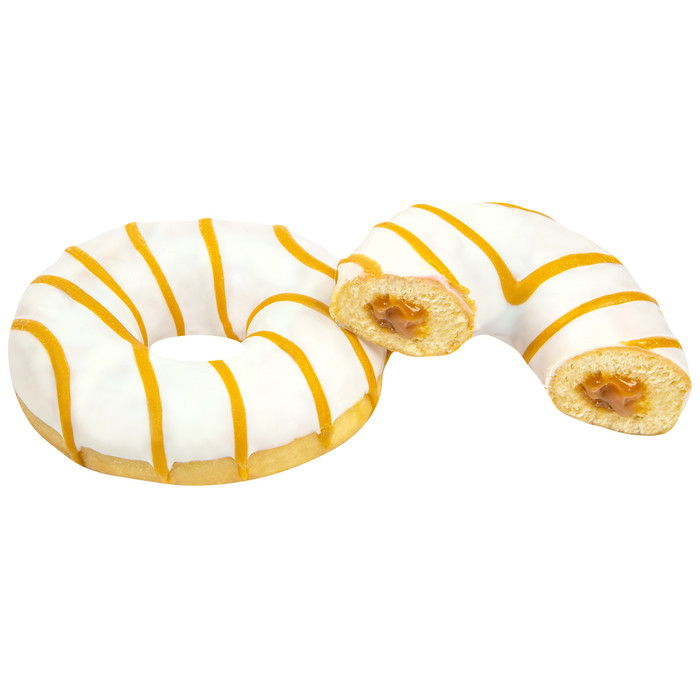 Совместные покупки Уфа Продукты Прочая заморозка — STOKSON Пончик Донат Карамельная начинка белая глазурь, карамельные полоски