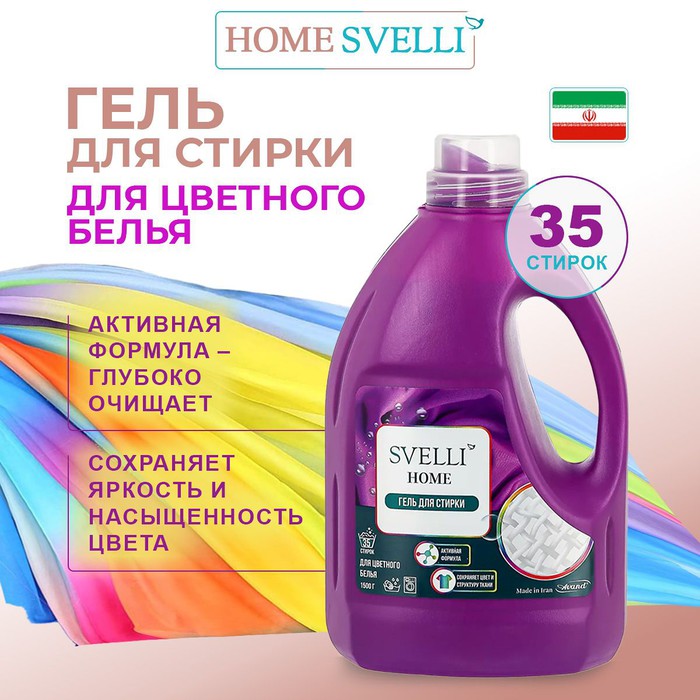 Гель для стирки Svelli для цветного белья из хлопчатобумажных, льняных, синтетических материалов из смешанных волокон. Жидкий порошок равномерно проникает в волокна одежды и эффективно удаляет загрязнения, сохраняя насыщенность цвета, форму и мягкость ваших вещей.