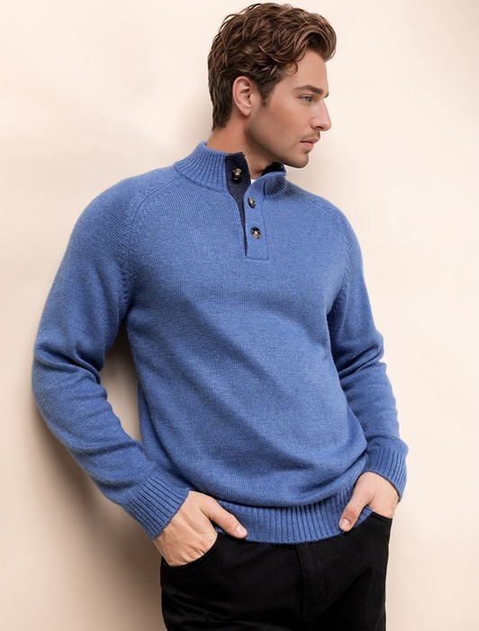 Совместные покупки Уфа Мужская одежда Футболки — Свитер из теплой пряжи с шерстью с застежкой на крупные пуговицы