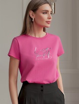 Vilatte Футболка оверсайз с принтом стразами из премиального хлопка с эластаном