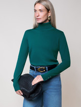 Vilatte Водолазка тонкой вязки из хлопка с нейлоном D34.197 зеленый