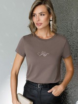 Vilatte Нарядная футболка с принтом фольгой из премиального хлопка с эластаном D
