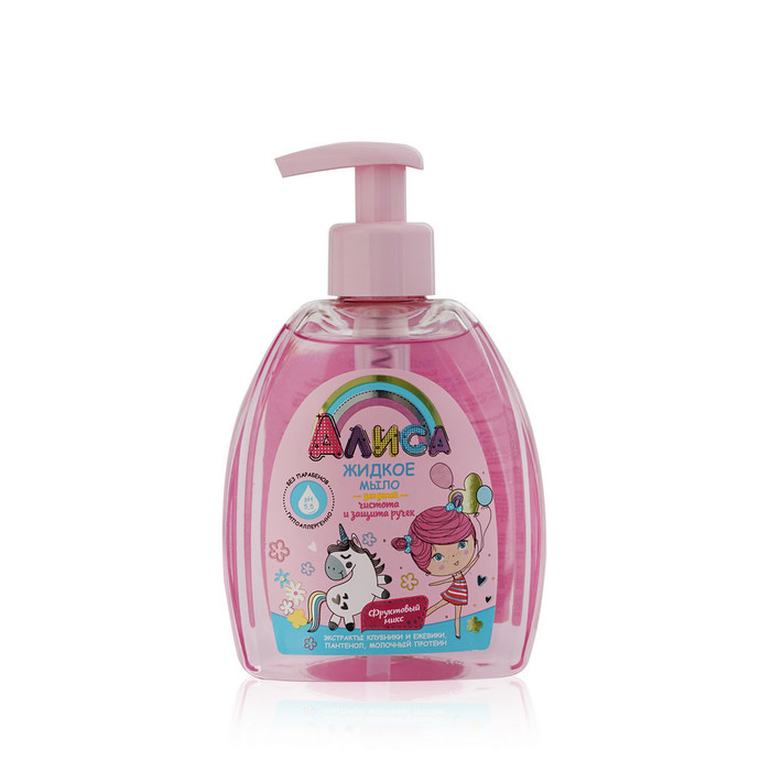Жидкое мыло «Алиса» имеет мягкую моющую основу и нейтральный уровень pH, поэтому бережно очищает нежные ручки, сохраняя кожу мягкой и увлажненной.