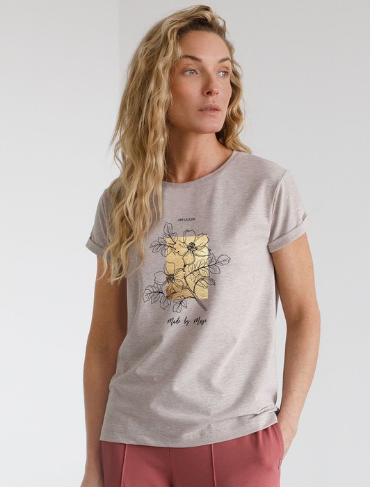 Состав: 92%Хлопок 8%ПУ Плотность: 170 Г/м2Модная футболка кофейного цвета привлекает внимание своим интересным дизайном и ярким принтом. Благодаря прямому крою изделие комфортно садится на любую фигуру, в том числе на большие размеры, и не сковывает движений. Круглый вырез подчеркивает современный стиль, а натуральный материал из хлопка с добавлением эластана обеспечивает удобство в повседневной носке и приятные тактильные ощущения. Прочность и износостойкая структура сохраняет первоначальную форму футболки после множества стирок. Рукава имеют аккуратные подгибы, что придает изделию завершенность и помогает сохранять аккуратный внешний вид. Принт в виде цветов и надписи нанесен красками с устойчивым покрытием, перевод надписи: Art gallery made by muse - Художественная галерея, созданная музой. Стильная футболка гармонично вписывается в любой гардероб и подойдет для прогулок, отдыха дома или неформальных встреч. Благодаря особенностям кроя модель хорошо сидит, скрывая недостатки и подчеркивая достоинства. Удобная футболка идеально сочетается с базовыми вещами, позволяя создавать новые интересные образы каждый день.
