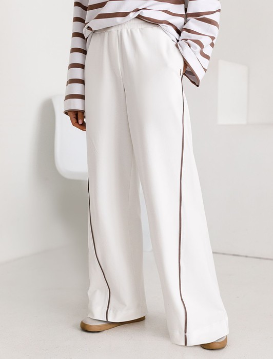 Состав: 95%Хлопок 5%ПУ Плотность: 240 Г/м2 Параметры модели на первом фото: Рост 172, бюст 88, талия 64, бедра 88 Размер товара на первом фото: 42Брюки свободного кроя с контрастными лампасами выполнены из эластичного футера двухнитки. Модель дополнена боковыми карманами. Пояс на резинке фиксируется внутренним хлопковым шнуром. Диагональные визуально стройнят силуэт, а образ становится динамичным. Сочетайте изделие в костюме с паркой D49.076 и свитшотом D49.073