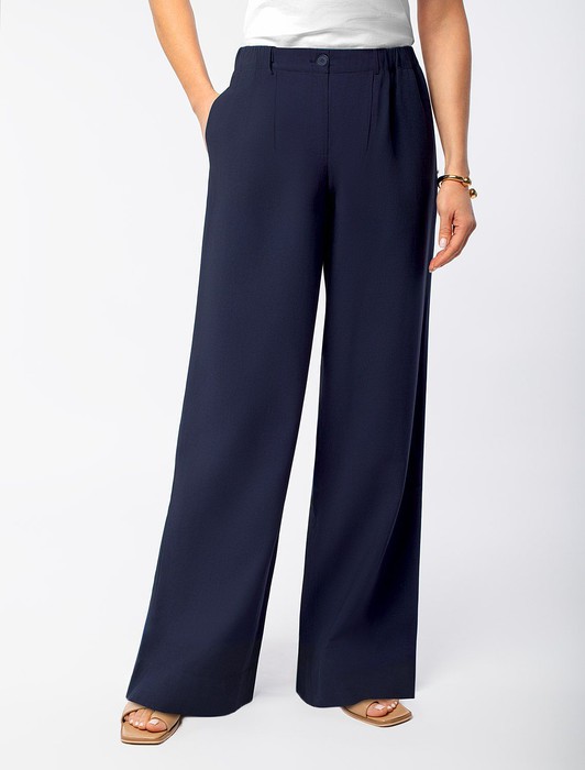 Состав: 76%Лиоцелл (Вис) 24%ПЭБрюки темно-синего цвета свободного кроя выполнены из плотного лиоцелла. Лиоцелл это более дорогой и экологичный вариант вискозы, очень прочный и шелковистый. Свободные прямые брюки с высокой посадкой визуально вытягивают силуэт и стройнят. Эластичный пояс на мягкой резинке гарантирует комфорт в талии и отлично сядет на любую фигуру. Удобные карманы по бокам и свободный крой делают эти брюки базовым элементом гардероба. Летние брюки отлично сочетаются с монохромным верхом, с ними можно создавать эффектные наряды как на выход, так и для ежедневных рабочих дел или простых прогулок, от делового шика до повседневного кэжуал.