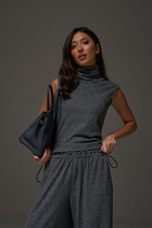 Vilatte Джемпер с объемным воротом и шнуром на талии из теплого футера-трехнитки
