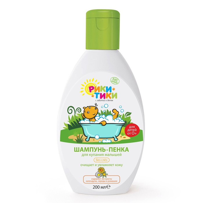 Прекрасно подходит для чувствительной кожи детей с первых дней жизни. Бережно очищает волосы и кожу ребенка. Шампунь-пенка Рики-Тики для купания создан специально для малышей и разработан для использования с первых дней жизни.