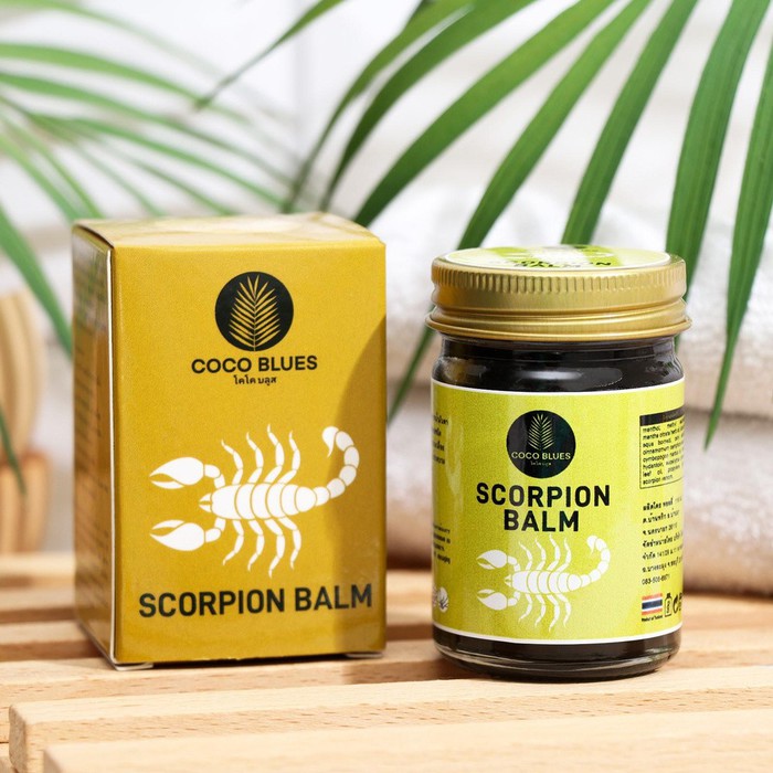 Бальзам тайский с ядом скорпиона Coco Blues Scorpion Balm основанный на лечебных травах, лучшее средство для снятия болей в суставах, при лечении ушибов, вывихов, растяжений и спортивных травм.Средство оказывает обезболивающее, противовоспалительное и противоотечное действие. Способствует лечению артрита, артроза, остеохондроза, ревматизма и радикулита.Улучшает кровообращение, ускоряет сращивание костей при переломах.