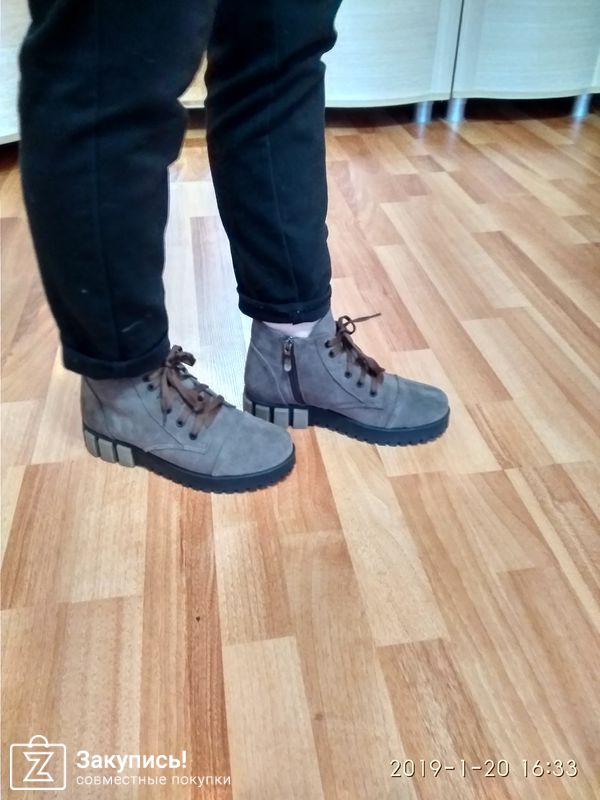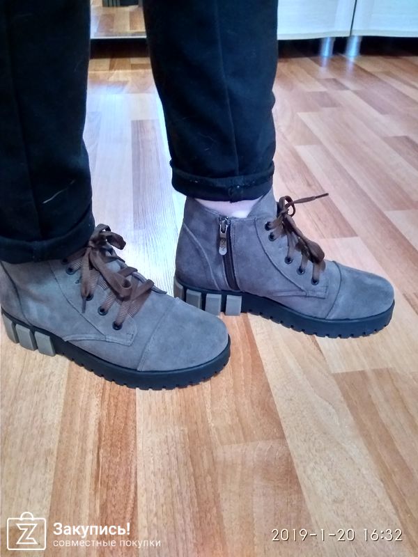 Заказывала дочке на меху в цвете замша кофе с молоком. У нее стопа 22.5 по их размерной сетке с учётом утеплителя заказала 36 размер. Сели идеально. Без запаса , конечно. На тонкий носок, но и не жмёт нигде. Мне конечно с мои стандартным 36 ( длина стопы 23.5 , средней полноты) малы причем прилично.. Делаем вывод , что они маломерят на размер. Качество очень хорошее. Цвет в реальности немного не такой, теплее.