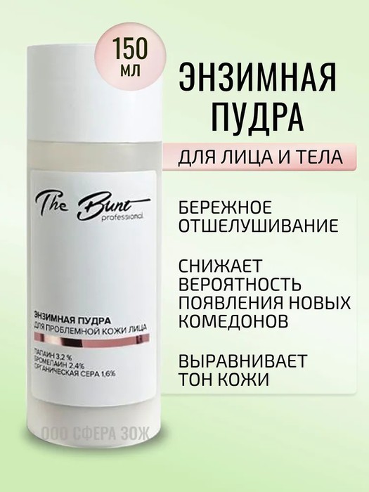 Тонкодисперсная энзимная пудра для проблемной кожи лица на основе натуральных компонентов глубоко, но бережно очищает поры, мягко шлифует рельеф, уменьшает появление комедонов, придаёт коже импульс к регенерации и оживляет её за счёт мягкого эффекта пилинга.