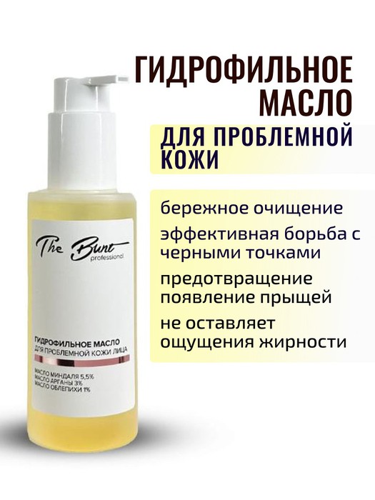 Гидрофильное масло для проблемной кожи лица с маслами миндаля, арганы и облепихи легко эмульгируется с водой, превращаясь в мягкую молочную сыворотку, эффективно удаляет стойкий макияж (в том числе BB и СС-кремы), излишки себума, мягко очищает поры, препятствуя образованию черных точек и воспалений.