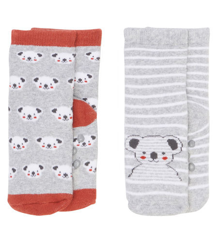 1 x gestreift mit Koala-Motiv 1 x komplett mit Koala-Motiven Vollfrottee ABS-Druck 2er-Pack Produktnummer: S1144875_5 Material 1. Paar: 83 % Baumwolle, 15 % Polyamid, 2 % Elasthan 2. Paar: 72 % Baumwolle, 26 % Polyamid, 2 % Elasthan