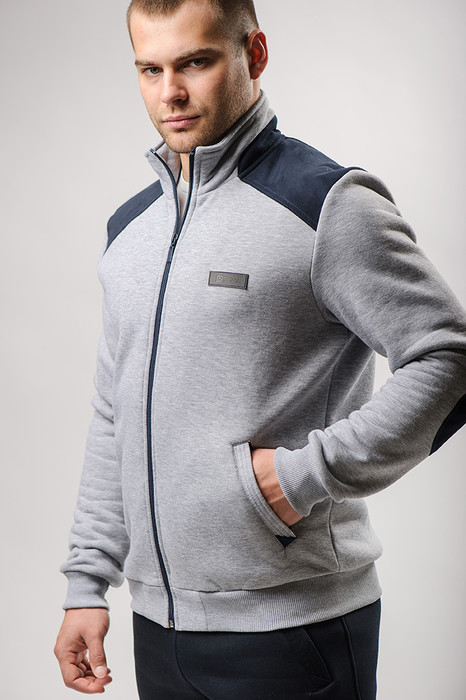 Совместные покупки Уфа Мужская одежда Толстовки — Толстовка М-1450: Серый меланж / Тёмно-синий