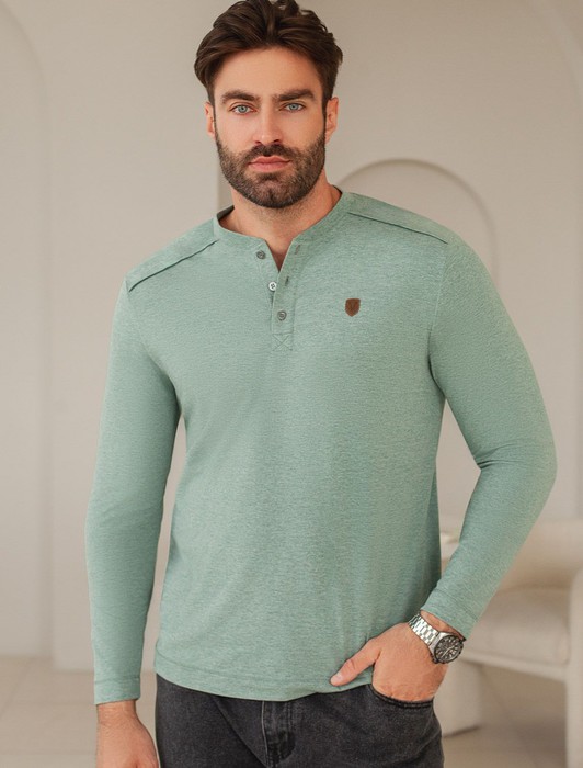 Состав: 92%Хлопок 8%ПУ Плотность: 170 Г/м2 Параметры модели на первом фото: Рост 190, бюст 108, талия 87, бедра 104 Размер товара на первом фото: 54Лонгслив светло-оливкового цвета с эффектом меланж с длинным рукавом выполнен из премиального хлопка с эластаном, Мягкий материал обеспечивает приятные тактильные ощущения, натуральный состав ткани позволяет коже дышать, удобен в повседневной длительной носке. Благодаря эластичному материалу лонгслив тянется и создает комфортный полуприлегающий силуэт. Подходит для маленьких и больших размеров, не сковывает движения и сохраняет форму после стирки. Облегающий лонг выгодно выделяет линии тела, при этом в нем ощущается свобода движений. Круглый ворот на металлических пуговицах создает стильный образ, который легко впишется в базовый гардероб. Тонкий джемпер дополнен нашивкой из эко кожи с логотипом бренда.