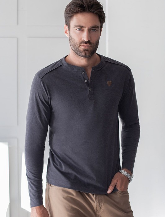 Заказать Тонкий лонгслив с круглым воротом на пуговицах из премиального хлопка с эластано
