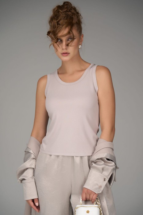 Современный и универсальный трикотажный топ станет идеальным дополнением вашего гардероба. Мягкая, приятная к телу ткань обеспечивает комфорт на весь день, а аккуратный крой подчёркивает силуэт, не сковывая движений. Минималистичный дизайн делает его легко комбинируемым — носите с офисными брюками, юбкой или любимыми джинсами. Топ доступен в нескольких спокойных оттенках, которые подчеркнут вашу естественную элегантность.
