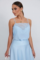 Блузка женская из текстильной ткани с цельнокроеным рукавом. Прямого силуэта. По спинке расположен подрез. В шов вставлено кружево. Рукав 3/4, низ рукава с манжетой. По плечевому шву  вставлено кружево. Вырез лодочка. Обработан притачной бейкой.