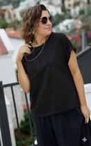 Блуза из трикотажа, немного расширена к низу, с цельнокроеными рукавами и отворотами. Спереди выполнена аппликация из страз разного размера. Блуза подойдет для прогулок, посиделок с друзьями, похода в кафе и отдыха. Модель свободного кроя органично впишется в гардероб, всегда будет элегантной и уместной, эта модель «вне времени» и будет актуальна в следующих сезонах. Блуза комфортна в носке на каждый день, создает женственный, игривый и элегантный образ. Мы используем материалы высокого качества, делаем акцент на фигуру и современный крой, что позволяет нашим изделиям не терять актуальности, а для вас служить выгодным приобретением. Длина блузы 62 см, длина рукава 26,5 см (р 52-56), 29,5 см (р 58-62).
