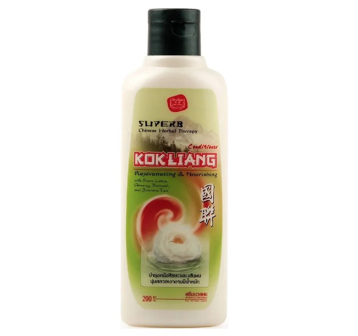 Кондиционер для волос Kokliang усиливает лечебный эффект шампуня Kokliang, не утяжеляет волосы после использования, снимает зуд и необычно «холодит» и дезодорирует кожу головы.
