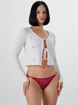 Трусики выполнены из фактурного сетчатого ажурного кружева. Передняя деталь декорирована атласным бантиком. Широкая боковина.В комплект можно подобрать Бюстгальтер.