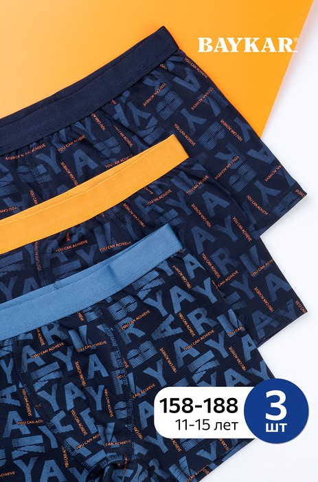 Набор детских трусов боксеров из 3 штук для мальчиков-подростков выполнен из мягкого хлопка, который отлично пропускает воздух и позволяет коже дышать.Подростковые боксеры представлены в сине-оранжевом цвете и дополнены принтом Буквы.