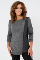 Туника полуприлегающего силуэта, с закругленным низом, с округлой горловиной, с кулисой по линии талии. Рукав короткий, реглан, из отделочного полотна. На полочке расположены накладные фигурные карманы из отделочного полотна. Горловина, рукава, карманы, низ  окантованы бейкой из основного полотна с отделочной строчкой контрастными нитками