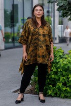 Туника с принтом, рукав-кимоно, горловина и рукав окантованы, внизу декор - люверсы, в которые продет шнурок. Люверсы могут быть как справа, так и слева