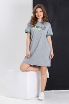 Туника молодежная из гладкокрашенго трикотажного полотна «кулирка» в комбинации двух видов контрастного цвета, прямого силуэта, с короткими втачными рукавами, овальной горловиной, окантованной основным материалом, принтом на полочке, выполненным в технике шелкографии, карманами и декоративными вставками в боковых швах.