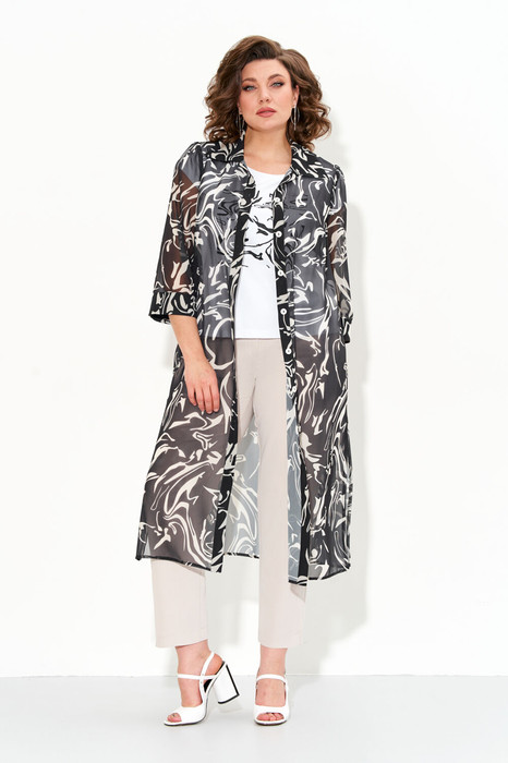Туника женская прямого силуэта из шифона со втачными рукавами и разрезами по бокам, застежка-планка на петли и пуговицы.