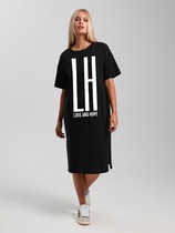 Персиково-синяя туника из кулирки. Принт в виде собачки в очках и надписи. Рукава чуть ниже локтей, общая длина до середины бедра. Может быть парой детской тунике Айка (продается отдельно). Размеры от 42 до 52. Внимание, товар не продается в розницу!