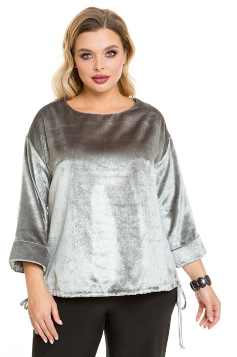 Нарядная туника свободного силуэта, выполнена из неэластичного бархатного полотна. Перед и спинка целые. Перед с двумя нагрудными вытачками. Вырез горловины переда и спинки в форме «лодочка» обработан обтачками. Туника с удлинённой линией плеча и свободной заниженной проймой. Рукав втачной прямой. Длина рукава от плечевой точки в 50 р-ре – 60 см. в 60 р-ре – 63 см., ширина рукава по низу в 50 р-ре – 34 см. в 60 р-ре – 40 см. По низу рукава широкий притачной манжет, позволяющий регулировать длину рукава. Низ туники собирается на кулиску по объемы бедер. Туника без застежек и подклада. Длина изделия по спинке в 50 р-ре – 62 см. в 60 р-ре – 68 см.