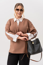 Туника молодежная из хлопка. Горловина, проймы и рельефы отделаны кантом. Накладной карман.