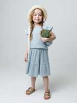 Трикотажная юбка А-силуэта, декорированная бахромой из шифона. Талия на резинке с люрексом.На ребенке представлен размер 140:- Ширина изделия по линии талии 28,2 см- Ширина по низу изделия 45,5 см- Длина изделия 35 смРазница между размерами составляет 1,5 см.
