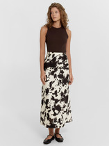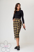 Юбка с элементом запаха, на притачном поясе. Выполнена из костюмной ткани в чёрном цвете, без подкладки. В новейших моделях запах располагается спереди сбоку. Это формирует изящный вырез треугольной формы, который смотрится очень женственно.