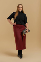 Юбка А-силуэта, длиной миди, на притачном широком поясе.
