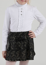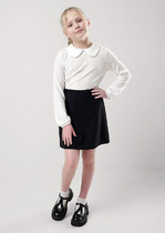 Стильная укороченная модель для девочек. Имеет по четыре встречные складки спереди и сзади. Юбочка дополнена кокеткой с хлястиками.Хлястики декорированы пуговицами.Застежка на потайную молнию выполнена в левом боковом шве.На подкладе