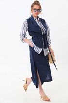 У линии низа изделия не высокая открытая шлица. Для приталенности сделаны четыре талиевые вытачки.